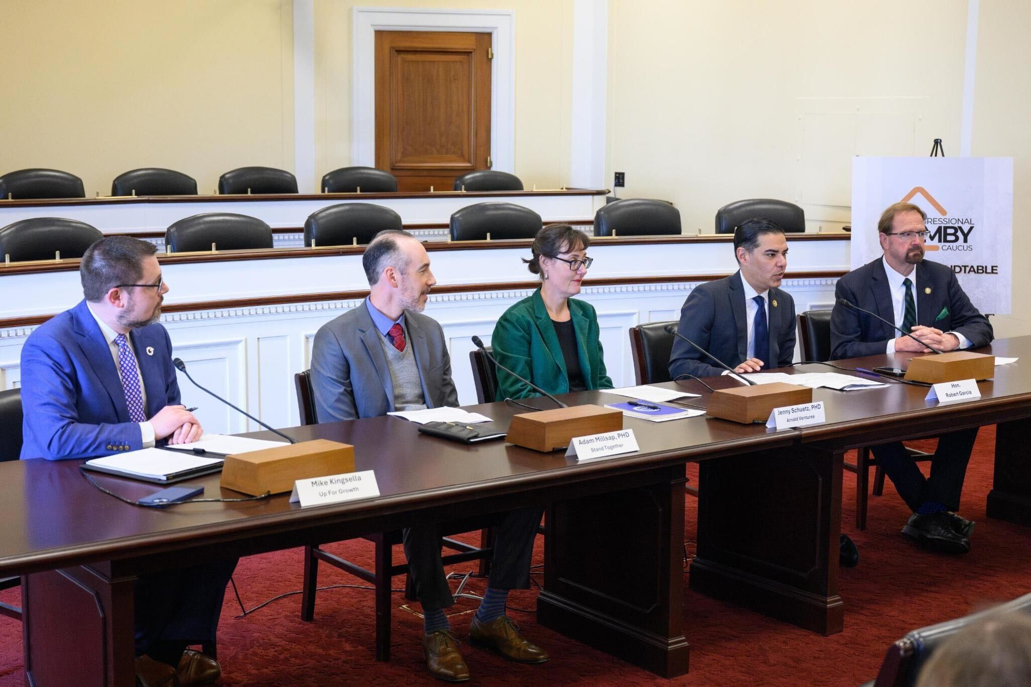 On Tuesday, the bipartisan YIMBY Caucus, co-hosted with Up for Growth Action, held its first official event—marking a significant step toward addressing America’s housing supply crisis. The event brought together Co-Chairs Representatives Robert Garcia (D-CA 42) and Chuck Edwards (R-NC 11), along with national housing experts Dr. Jenny Schuetz (Arnold Ventures) and Dr. Adam Millsap (Stand Together), for a timely and urgent conversation on the state of housing in America.